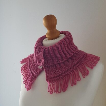 Simple to knit, yet stylish and versatile fringed collar.