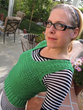 The stitch pattern hints of "crochet," but it isn't. It is a simple, four-row/round repeat. Plus, the vest is knit from the top down, and in the round, so there are no seams. There aren't even any seams on the tops of the shoulders!