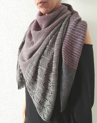This shawl is a road trip through Asia. Yarn contains Yak and Silk and lace pattern is inspired by lace pattern from Japan. Last Part of this trip is Japan during cherry blooming season. Fade into Nippon is an asymmetrical shawl which is build due to increases at one side. The body is knitted in garter stitch and fading the three colors. Last step is a lace pattern which gives this shawl his unique character.