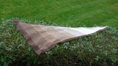 This asymmetrical shawl is written for 4 colours, but could easily be adjusted. It is written for sport or DK but thinner or thicker yarns, using the appropriate needles, work well and create a smaller/bigger shawl. Try to pick colours that change hue by similar amounts, the closer they are the better the fade