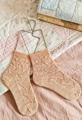 The Faded Quilt socks begin at the cuff with a tidy twisted rib and moves into a cosy textured patchwork of simple but eye catching stitches . The pattern contains three sizes, small, medium, and large and is knit top down with an eye of partridge heel and a flap and gusset construction. They end with a rounded toe. There’s enough detail in the pattern to keep the knitting interesting, but nothing that should be too tricky for a new sock knitter to master. This timeless design would look beautiful in almost any yarn, a tonal or lightly speckled yarn will really show off the textured blocks.