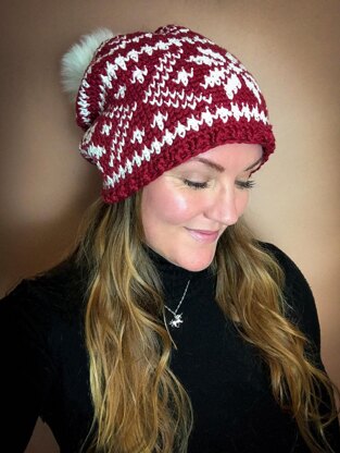 Fair Isle Snowflakes & Hearts Slouchy Beanie