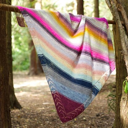 Falchion is a corner-to-corner blanket. It is designed so that you can use any amount of yarn, though I’d recommend a minimum of 1464m [1602yds] for a cot size. With a simple chevron lace that is mirrored on each side and contrast cornerstones. Falchion is an ideal pattern to customise the colour placement and make it your own.