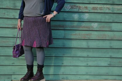 Knit this skirt as shown or use the Falda work sheet included to come up with your own custom version. This pattern generator worksheet allows you to customize the waist size, the length, the number of gores and the depth of the gores to create your own one-of-a-kind skirt.