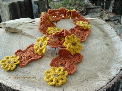 This cute scarf was made by combining both my original designed square and flower together, creating a perfect fall accessory.