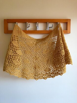 It is a smaller size, therefore a shawlette rather than a full size shawl. It measures 125 cm across the long edge and 37 cm at the deepest point. It is a great size to wrap around your neck just once and wear under your coat in colder months. The lacy open stitches make this shawlette a perfect summer evening wear when you just want to cover your shoulders with something light and modern.