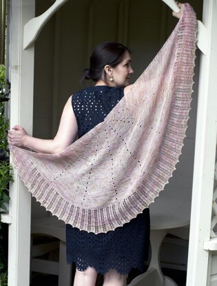 Lacy shawls enthral and intimidate me, so I developed this design from my longing to create one that is an ideal first lace knitting project. It reminds me of the end of Spring when the Cherry Blossom trees shed their petals, like nature’s confetti.