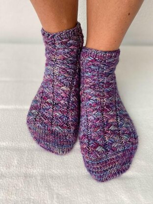 FallSock29 are socks worked in the same pattern as VesterbyCrea No 29 sweater. The socks are worked from the shaft to the toe. The socks are worked in pattern on the shaft and the upper foot and stockinette in the foot sole.