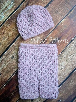 This pattern is for a gorgeous little set featuring a crochet faux cable hat and matching baby pants. They are both very gender neutral and suitable for boys or girls. An easy project to whip up for a shower gift, or “new baby hospital visit” gift. Also makes a fabulous photo prop!