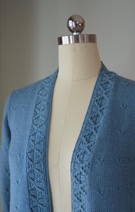 A lovely lightweight cardigan for a breezy spring day, featuring detailed trim at the neck band and side seams, and subtle texture in the body.