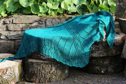 Gently undulating lace mimics the waves of sea with seaweed rippling through. Knit from the top down with a central lace panel, this shawl moves smoothly from smooth stockinette into lace columns and finally a wide lace edging. Make full use of your yarn with almost every ounce used up.