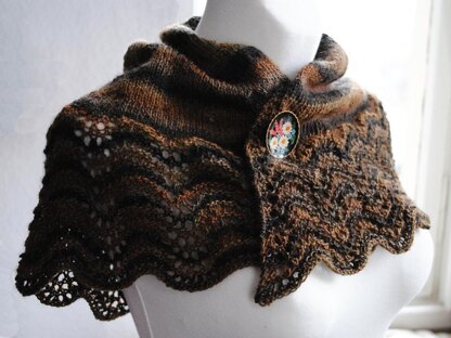 The Feathers Shawlette is semi-circular and features a feather and fan edging. You begin to knit at the center and work your way outwards to the feather and fan edging. This gives you the opportunity to knit as long as your yarn lasts. The Feathers Shawlette suits self-striping yarns with long repeats extremely well.