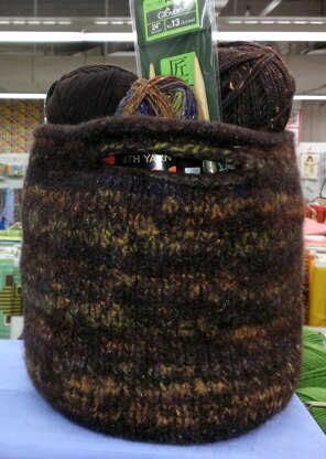 You can use smaller DPNs to finish the bottom of the bag to make it a tighter fabric less permeable to small items, i.e. knitting needle tips or pens and pencils.
