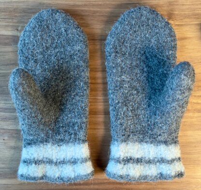 Felted Mittens A very cosy but effective design, perfect for a cold wintery day. The felting makes these mittens waterproof and windproof, so that you can use them for playing in the snow, going down the ski slopes or just for a bike-ride down to town.