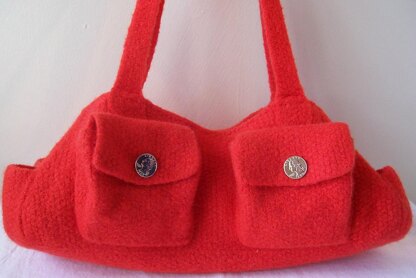 This gorgeous bag features two expanding pockets on the front, four small side pockets and lots of interior space. It makes a great tote bag for your small-to-medium knitting projects, or even an everyday purse.