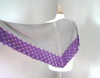 A pretty fir cone edging in a contrast color adds a fun element to this simple top-down stockinette shawl. Try it in a solid color for a just as stunning look!