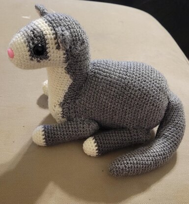 This pattern is similar to the Laying Ferret Amigurumi, but more complex. You can make nearly any coat of ferret, from Siamese to Sable, and even Black-Eyed White. This plush is solid and can stand by itself! Recommended for experienced crocheters only.