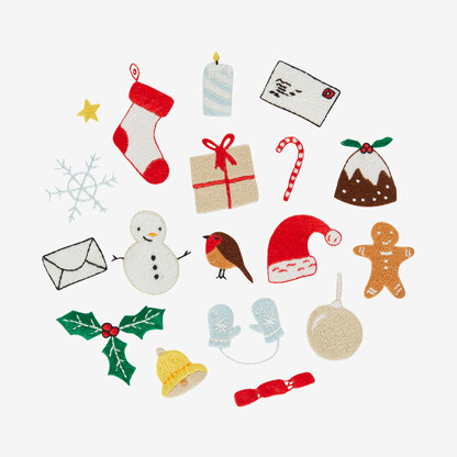 What do you associate with Christmas: a mistletoe, mittens, and gifts? Maybe also, a snowman and a Christmas cracker? This free embroidery pattern has it all and even more.