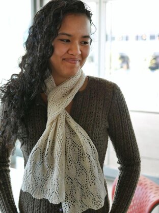 An airy scarf or stole featuring an allover filigree motif with texture and depth that pops in a springy lace yarn. A handpainted colorway is put to good use in this pattern, where it will highlight the undulating motif. While the pattern is visually complex, the stitchwork is not difficult, with wrong side rows almost entirely in purl. It’s a great choice for a beginner/intermediate lace knitter or a more experienced knitter looking for something to relax with. Stole is worked in one piece, but may be worked in two halves and grafted at the center back for a more symmetrical appearance. Substituting yarn and/or needles may result in an overall variation in size.