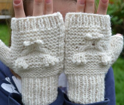 This pattern is for children's fingerless mittens. The finished mitten is 6 inches long, and 3 inches wide (not including thumb section).