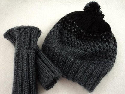 Two tone fingerless gloves and Simple fingerless gloves and two tone hat with pompom instructions included.