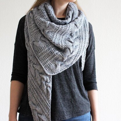 This beautiful shawl features eye-catching large cables and textures to create a warm & cosy winter wrap.