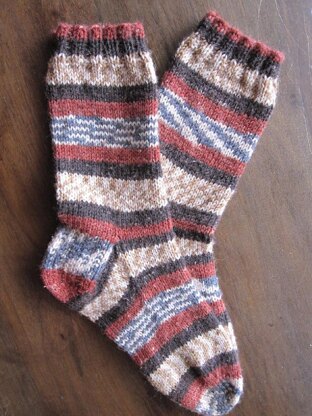 This is a very basic top-down sock pattern whose intent is to guide a first-time or newbie sock maker through the process without much wringing of hands and give some variety to the weight of yarns he or she might want to use.