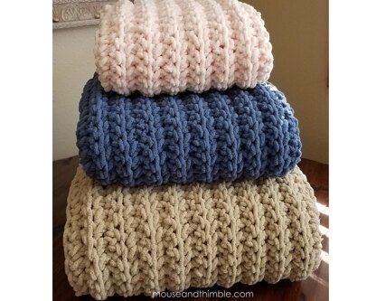 These cuddly blankets feels ultra soft on skin. The snugly, springy texture will hug you right back! Quick & Easy to crochet in 5 sizes from baby lovey to oversize throw. The neatly tailored edging and thermal texture design is simple to master.