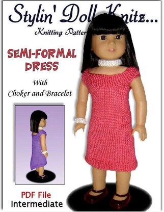 Fits American Girl. Knitting pattern, doll clothes, dress 035