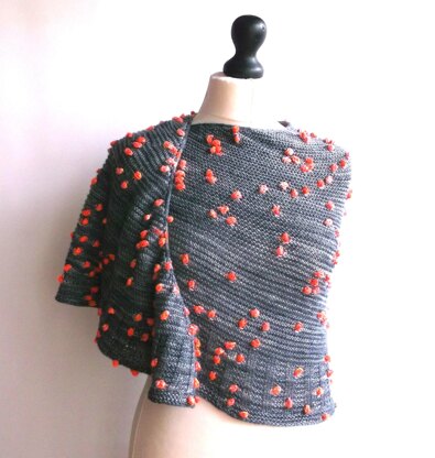 Starting with an I-cord cast on, then worked in garter stitch, applying the bobble stitch until we reach the border. Then a garter rib pattern is worked.