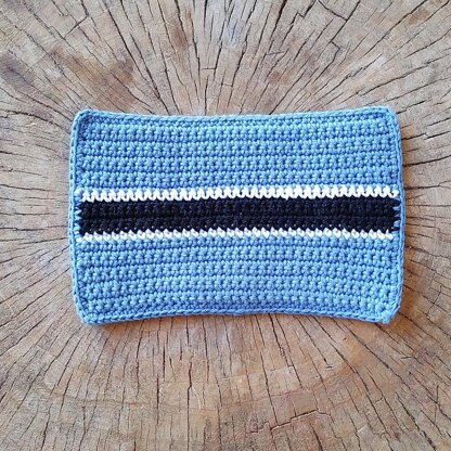 Easy crochet pattern of flag of Botswana, with chart. PDF pattern with clear instructions to make this flag and use as mug rug, applique on bag/rucksack or to make a bunting. Just about 20g/0.7oz of sport weight cotton yarn is needed to make a double sided flag. You can make it if you know single crochet stitch, crocheting in rows and changing colors. Finished size: 16x10cm/6x4”