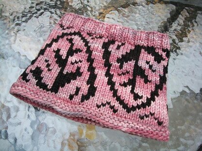 The color work in this cowl was inspired by a particularly lovely coleus plant. A lining hides the floats and makes it extra warm and cozy, but could be omitted if desired. Variegated yarns can be a lot of fun in this pattern!