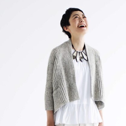 Knit it in a lovely bright color to lighten up your spring wardrobe. A cropped length cardigan knit top-down. The shape compliments diverse body shapes. The construction is very unique, with two different ribbing patterns and with pockets for added features. Interesting to knit, cute to wear!