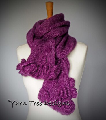 This is a beautiful elegant yet warm scarf with knitted roses at each end. The body is simple stocking stitch, so it grows quickly and is easy to knit. The Fleur scarf uses the beautiful Debbie Bliss Angel yarn. Angel is a super soft lace weight luxury mohair and silk mix yarn that drapes superbly. The finished scarf can be used as a cosy scarf to snuggle up in, or as an eye-catching wrap. The project suits the advanced beginner.