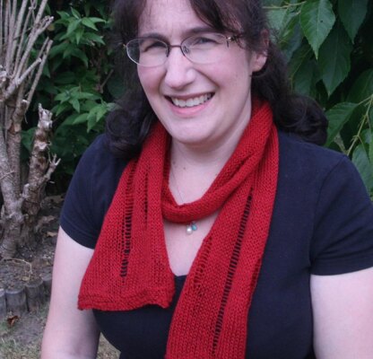 After blocking the scarf measures 54" long by 6.5" wide. Pattern tension is 19 stitches and 21 rows to 4 inches over blocked stocking stitch, although exact tension is not vital (but may affect finished size and yardage requirements).