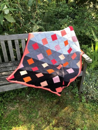 The Floating squares blanket is based on a single square pattern in different colors to build up the finished design. This pattern describes how to make the square and general how to sew up and create a border as well as providing layout suggestion in original colors as well as an empty layout which can be printed to add in your own colors.