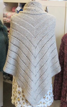 The green shawl is the smaller size (54" wide x 22" high) and the light colored shawl is the larger size (90" wide x 39" high).