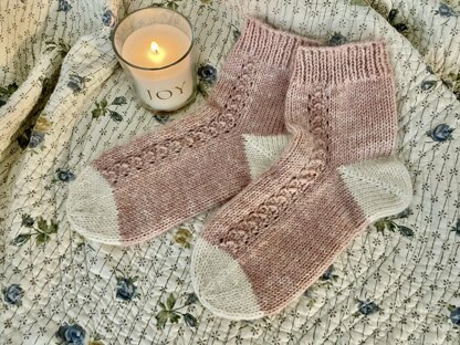 I created the Floofy House Socks with all of these cosy feelings in mind. Knitted with a dk weight yarn and some fluffy mohair, they are the perfect thing for evenings in with your family and loved ones.