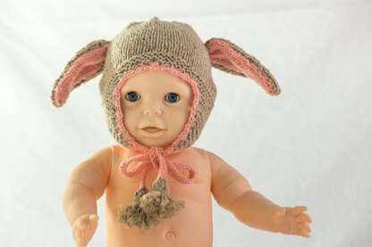 Floppy Eared Bunny hat pattern for babies and children. The pattern is knit in the round using worsted weight yarn and 4mm or US6 size needles. Contrasting inner ears and tassel ties make this a special and cute hat. Pattern comes in four sizes: 0-6 months, 6- 12 months, 1-3 years and 3-7 years. The hat has a lovely crochet border and earflaps with tassel ties. You will need up to 100 g of worsted weight yarn in main as well as 50 g contrasting colour of your choice, some DPNs size 4mm or US6, knitting needles 2.5mm or US2 , a crochet hook and darning needle.The pattern is knit in the round.