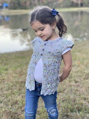 Floradora Light has a vintage feel to it and will become an heirloom piece to be handed down from baby to baby. Top down construction, with a 3 or 4 button closer. This is designed with positive ease, so there will be room to grow into a tunic. Suitable for Fingering or Sock.