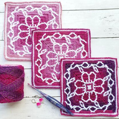 The magic lies in the mosaic crochet technique, which seamlessly blends colours without changing yarn within rounds. Ideal for granny square styled projects that can be used in various ways, from joining into crochet blankets to adding flair to home décor as a crochet table runner and more.