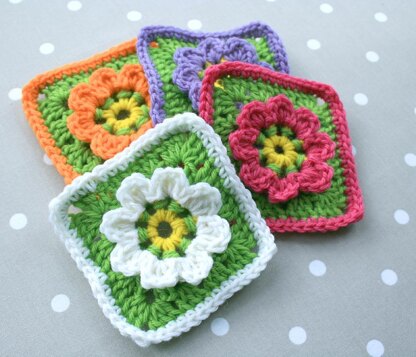 This granny square has a raised flower at the centre and is perfect for using up scraps.