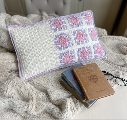 This stunning floral granny square cushion is perfectly balanced with intricate square motifs sitting next to the simple, modern panel to really make them shine. The plain back gives you an alternative to easily change the look of your sofa or bed with just a pop of colour for the pillow edging.