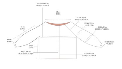 The pattern is written for three sizes 1 [2, 3] with ca. 16–26 cm /6.3–10.3 in of positive ease.