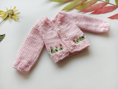 Floral cardigan knitting PATTERN fits to 32 cm / 13 in dolls such as Paola Reina, Ruby Red Siblies, Les Cheries, Jolina Ballerina, Little Darling and similar waldorf, textile, amerigan girl dolls, large teddy bear and amigurumi toys.