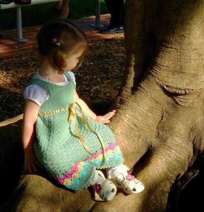 Floréali is a beautiful baby-doll style dress highlighted along the hem by rows of flowers. Perfect in cotton for summer, or created in a wool-blend to be worn over long sleeved tees for extra warmth in winter. Worked from the top down and completely seamless, this is the perfect choice for every little girl.
