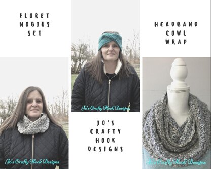 The Floret Mobius Set contains a Headband, a Cowl, and a Wrap. The set uses the Floret Stitch. There are 7 sizes to choose from and any 4ply Worsted Weight or Aran Weight yarn will work as long as gauge is met.