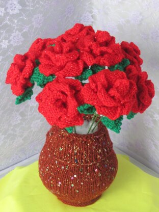 This pattern can be Knitted by beginner to advanced knitters. It is of a sparkling vase and flowers.