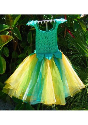 This pattern gives instructions for a cute crochet top in a V-stitch, with petals and cap sleeved straps, and also for the making of the tulle skirt with ribbons.