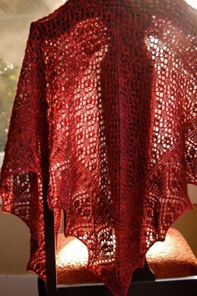 Gauge is not crucial since this is not a fitted garment but changes in gauge can affect both the size of the shawl and the amount of yarn required to complete it.